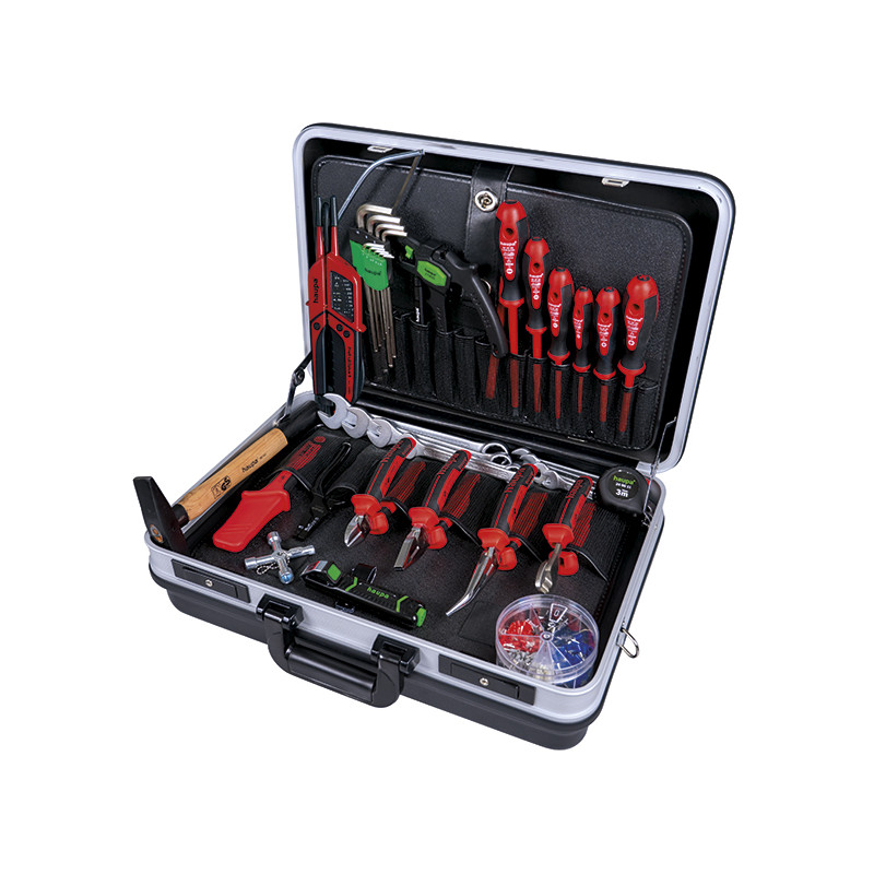 Emballage: 1Marque: HaupaRéférence: 220268EAN: Description: COFFRET A OUTILS 'START-UP MAX'