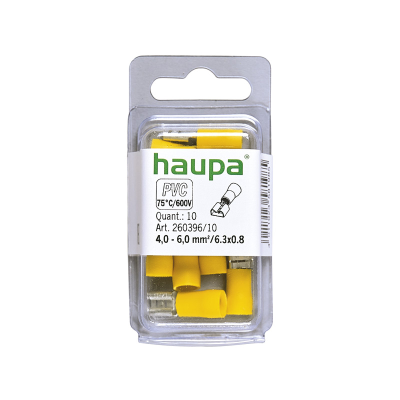 Emballage: 10Marque: HaupaRéférence: 260396/10EAN: Description: LANGUETTE A SERTIR 4,0-6,0/6,3x0,8 jn