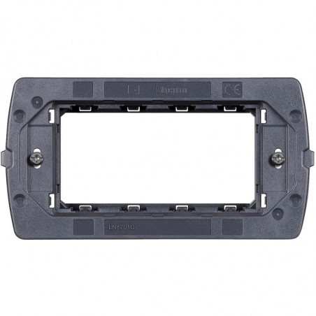 Emballage: 10 - 10 - 2240 Marque: BticinoRéférence: LN4704CEAN: 8005543423691Description: LivingLight-Support à vis Air 4 modules