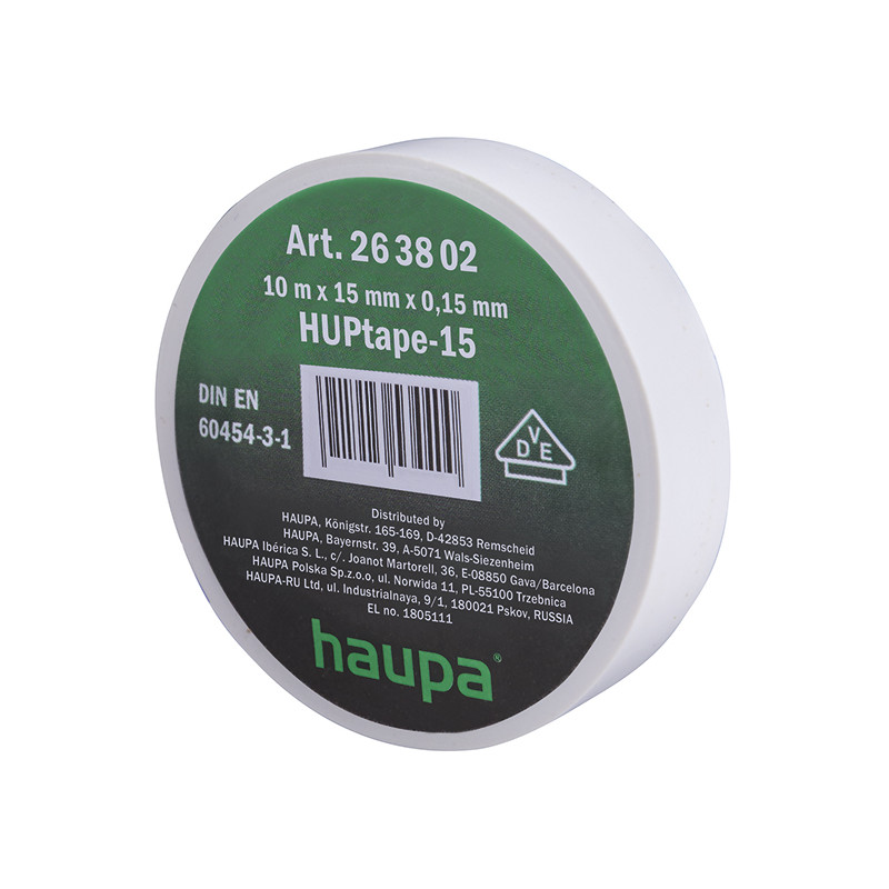 Emballage: 8Marque: HaupaRéférence: 263884EAN: Description: Bande isolante électrique 19 mm x 33 m blanc