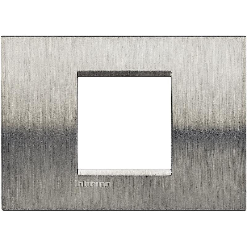 Description: LivingLight - installation de boîte d'encastrement italienne - plaque large recatangle - 2 modules - acier brossé
