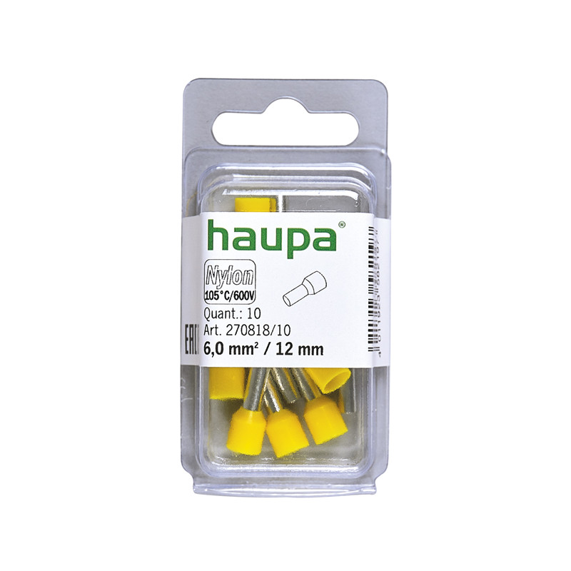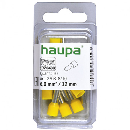 Emballage: 10Marque: HaupaRéférence: 270818/10EAN: Description: EMBOUTS ISOL.6/12 jn