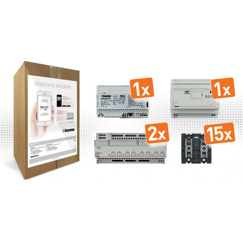 Description: MyHOME_Up - Kit de démarrage avec alimentation de base + 2 x actuateurs BMSW1005 + la passerelle Myhomeserver1 + 15x commandede base L4652/2