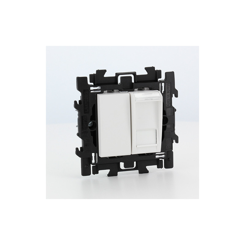 Emballage: 10 Marque: BticinoRéférence: N4279C6SSEAN: Description: LL Complet prise RJ45 + obturateur à griffes - blanc