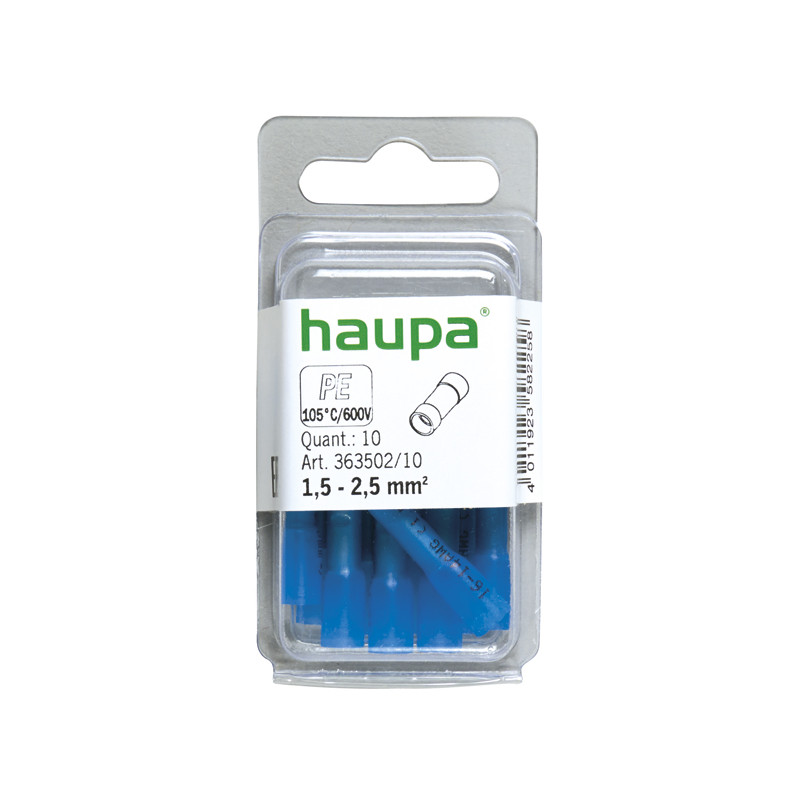 Emballage: 10Marque: HaupaRéférence: 363502/10EAN: Description: MANCHON A SERTIR 1,5-2,5mm2