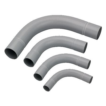 Description: Coudes, résistant aux chocs, Ø 32 mm - gris foncé RAL 7037, avec fixation par manchon sur 2 côtés