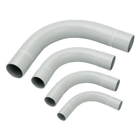 Description: Coudes, résistant aux chocs, Ø 40 mm - gris clair RAL 7035, avec fixation par manchon sur 2 côtés