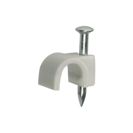 Emballage: 500Marque: HeliaRéférence: 307133EAN: 5412222353485Description: Fixation, attaches à clou câble rond, Ø 7 mm - 2,5 x 25 - gris,
