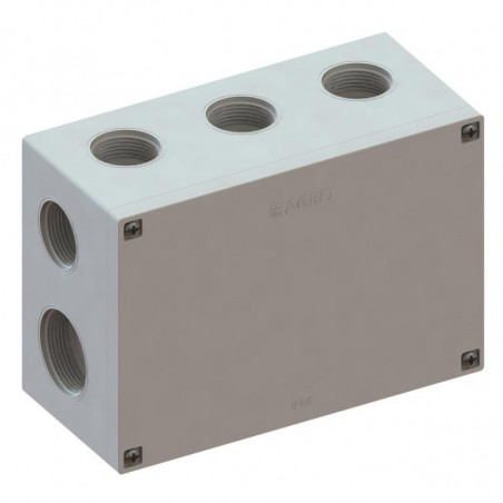 Description: Pose en saillie, boîte en saillie IP65 avec vis, 105 x 150 x 70 mm sans attaches, avec 8 entrées avec membrane sur les cotés et 2 au dessous