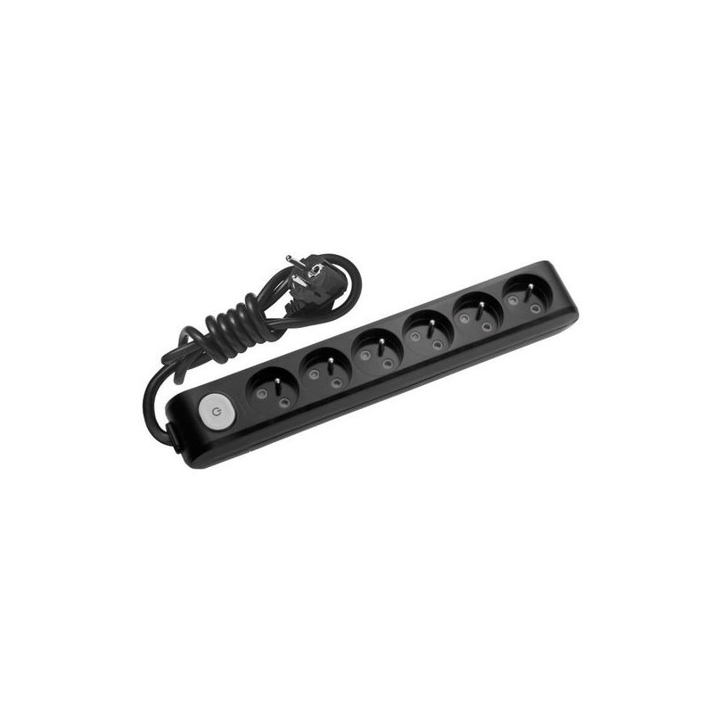 Multiprise 6 prises avec interrupteur avec 1,5m câble Noir 16A 3500W