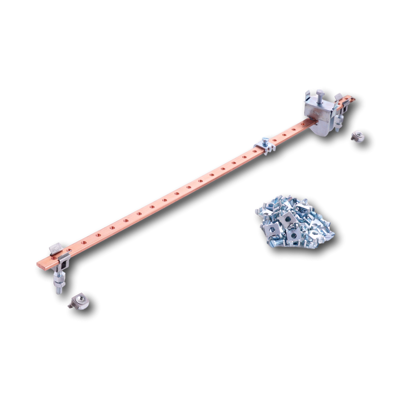 Description: Kit barrette Terre 12x3x550mm, 28xM5+ vis et griffes