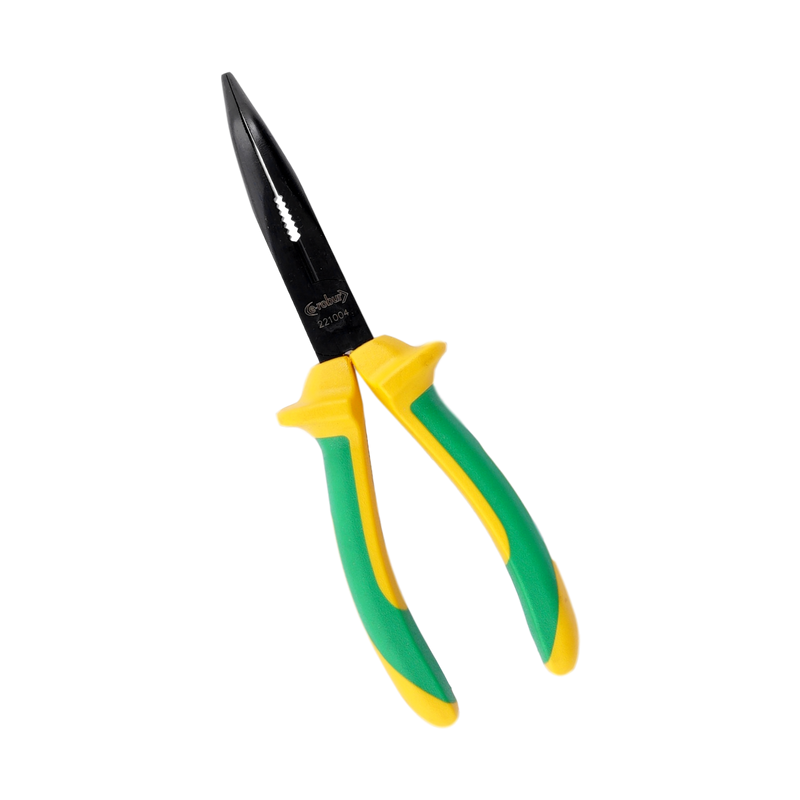 Description: Pince à becs 1/2 ronds coudés, isolée, long 200 mm.