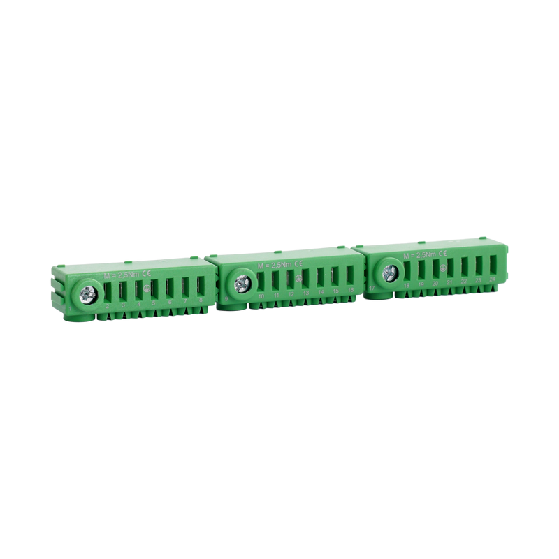 Description: Bornier de terre vert sans vis Conexbox 3x25 + 21x4mm²