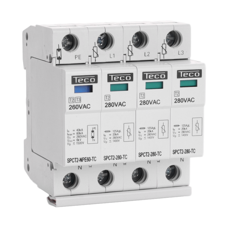 Emballage: Marque: TeconexRéférence: SPCT22803NPEEAN: 4015081704200Description: Type 2 parafoudre Teco 3p+N 280Vhttps://teconex.eu/fr/produit/552196e6-3e9c-8748-a78e-06dd326bee8e
