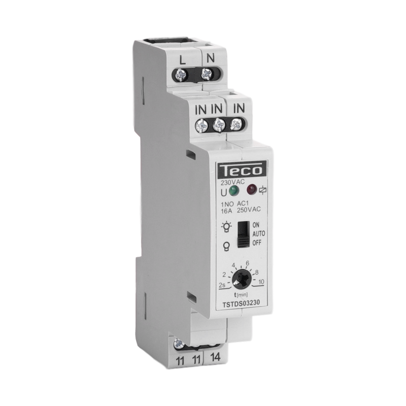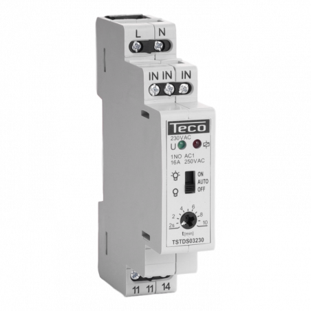 Description: Minuterie d'escalier Teco 230V 2s-10min + ON-OFF