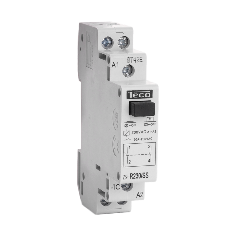 Description: Relais d'installation Teco 230VAC 20A 2NO