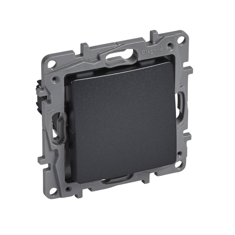 Emballage: 6 - 30 - 180 Marque: LegrandRéférence: 397657EAN: 3414970304070Description: Niloé DIY poussoir 6A 250V anthracite à griffes