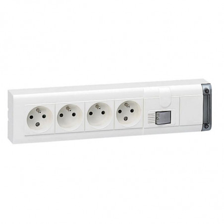 Description: Bloc multiprises d'installation avec inter bipolaire à voyant - 4 prises 2 P + T avec sécurité - 10/16 A - 3500 W en 250 V - blanc - sans cordon