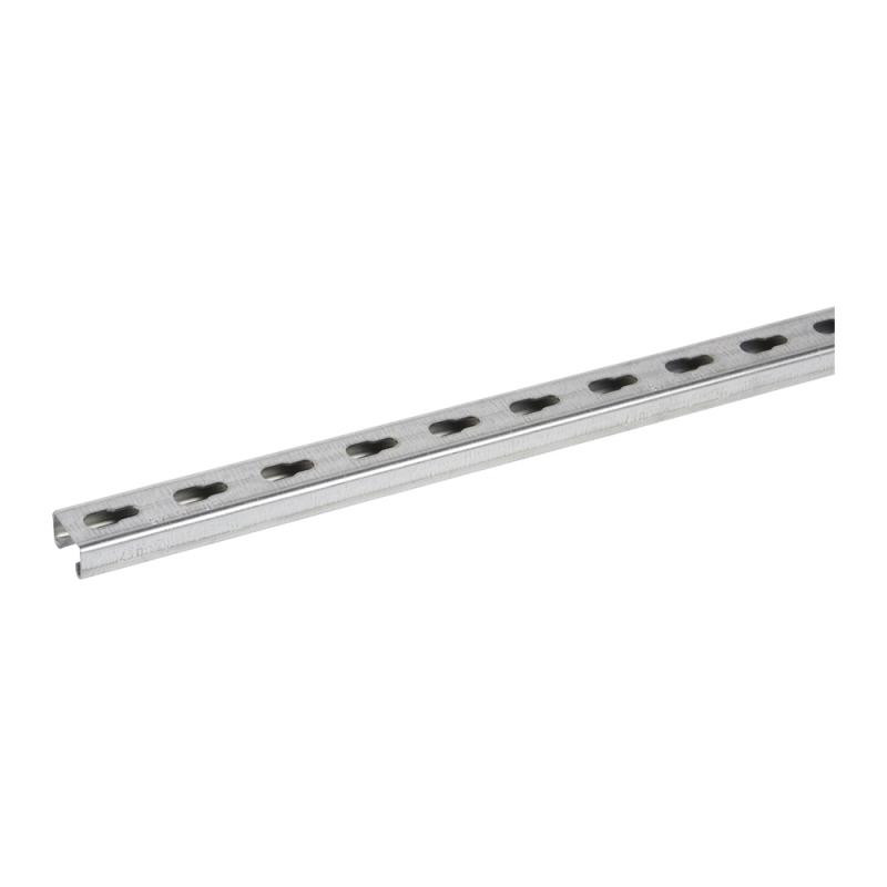 Description: Rail de suspension R21S - longueur 0,5 m - largeur 41 mm - hauteur 21 mm - épaisseur 1,5 mm - sendzimir - perforé