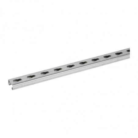 Description: Rail de suspension R21S - longueur 0,2 m - largeur 41 mm - hauteur 21 mm - épaisseur 1,5 mm - galvanisé à chaud - perforé