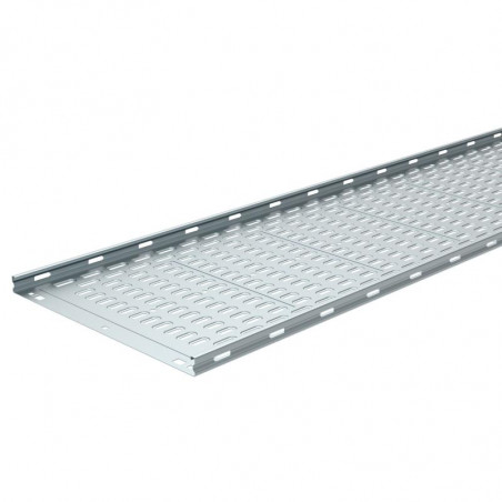 Description: Chemin de câbles tôle perforée avec fond embouti et bord sécurité P31 Mâle/Femelle - hauteur 25mm , largeur 400mm et longueur 3m - finition GC