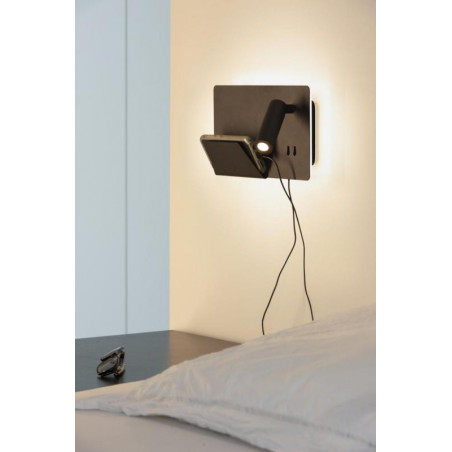 Description: SOMNILA SPOT, applique apparente LED indoor 3000 K, noire, version à gauche avec port USB