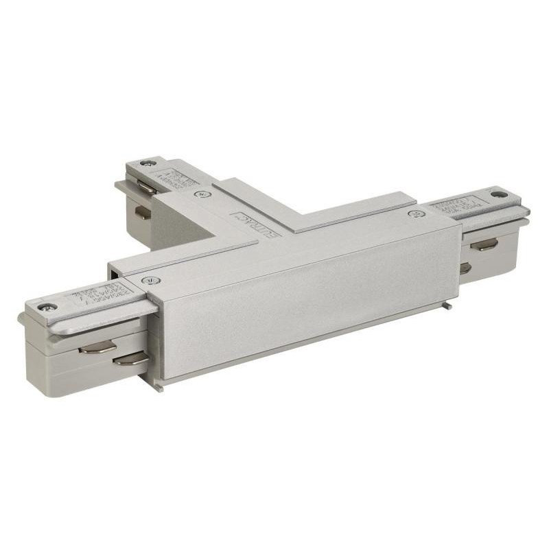 EUTRAC Connecteur en T avec option d'alimentation, terre à l'intérieur, droite, gris argent