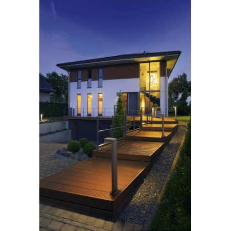 Description: QUADRASYL 75, Lampadaire d'extérieur, luminaire à économie d'énergie GX53, IP44, d'angle, gris argent, L/l/H 19/22,5/75 cm, max. 11 W