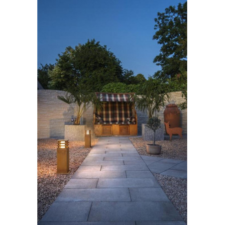 Description: Lampadaire Outdoor RUSTY SQUARE 40, LED, 3000 K, carré, acier rouillé, 12 x 12 x 40 cm (Lxlxh)