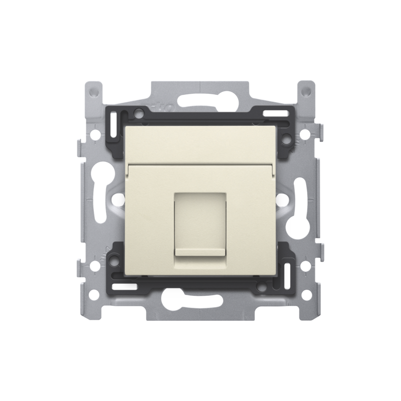 Description: 1 connexion RJ45 UTP Cat. 5E, modèle plat, incl. socle 60 x 71 mm avec fixation par vis et set de finition, couleur cream