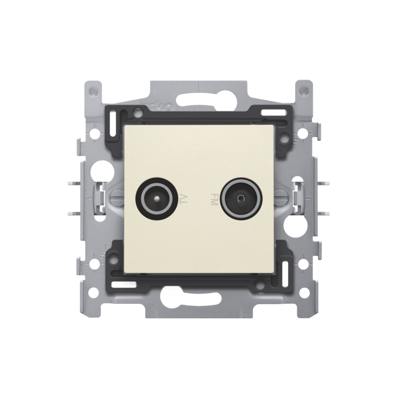 Description: 2 connexions coaxiales multiples pour TV et FM, socle et set de finition, couleur cream