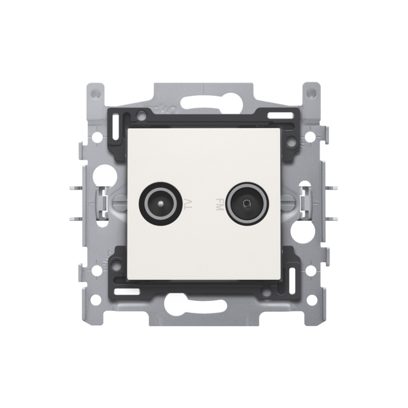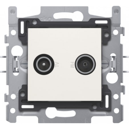 Description: 2 connexions coaxiales mâles simples pour TV et FM, socle et set de finition, couleur white