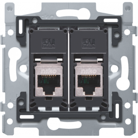 Emballage: 1 - 10 Marque: NikoRéférence: 170-65256EAN: 5413736267282Description: 2 connexions RJ45 STP Cat. 5E, modèle plat, incl. socle 60 x 71 mm avec fixation par visCouleur: 0