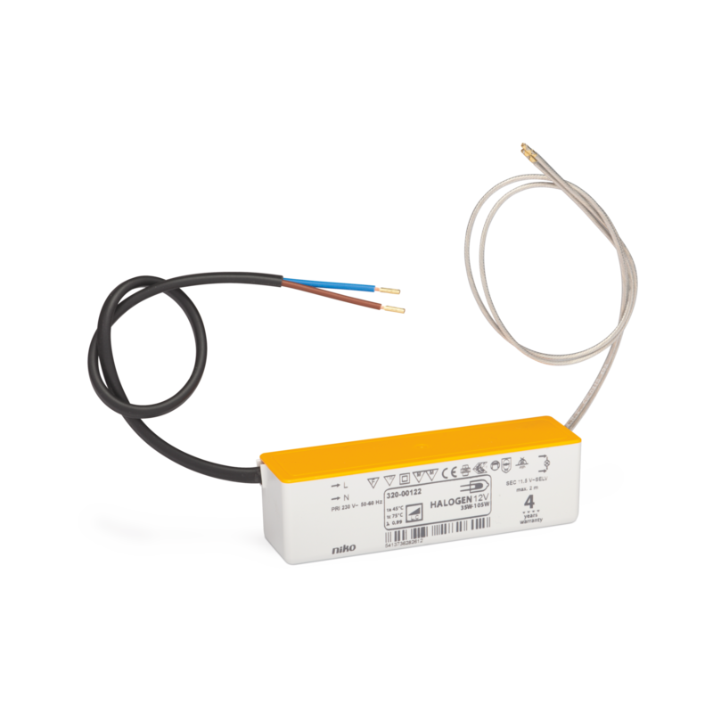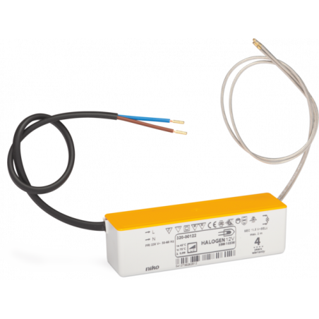 Description: Transformateur électronique compact de 105 W avec raccordements filaires du côté primaire et du côté secondaire (non coulé)