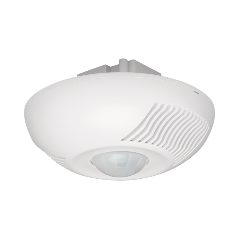 Description: Détecteur de présence, dual tech, PIR+US, 230 V, maître, 9,5 m / 19 m, pour boîte d'encastrement, couleur blanc