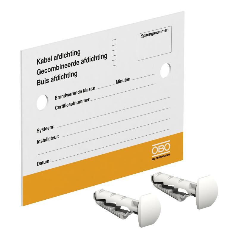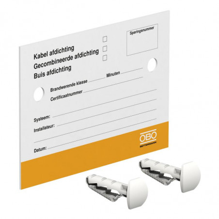 Emballage: 1 - 50 Marque: OBORéférence: 7205431EAN: 4012196593675Description: Plaque d'identification pour calfeutrement coupe-feu