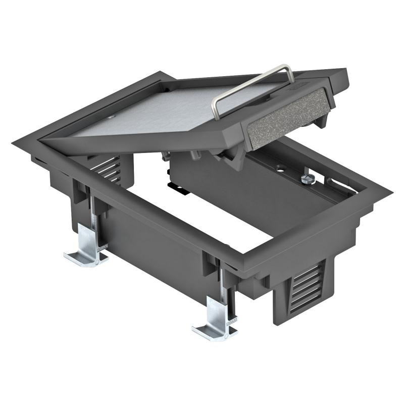 Description: BOÎTIER DE SOL 3 MODULES POUR MONTAGE EN FAUX-PLANCHER NOIR GRAPHITE 9011 PA