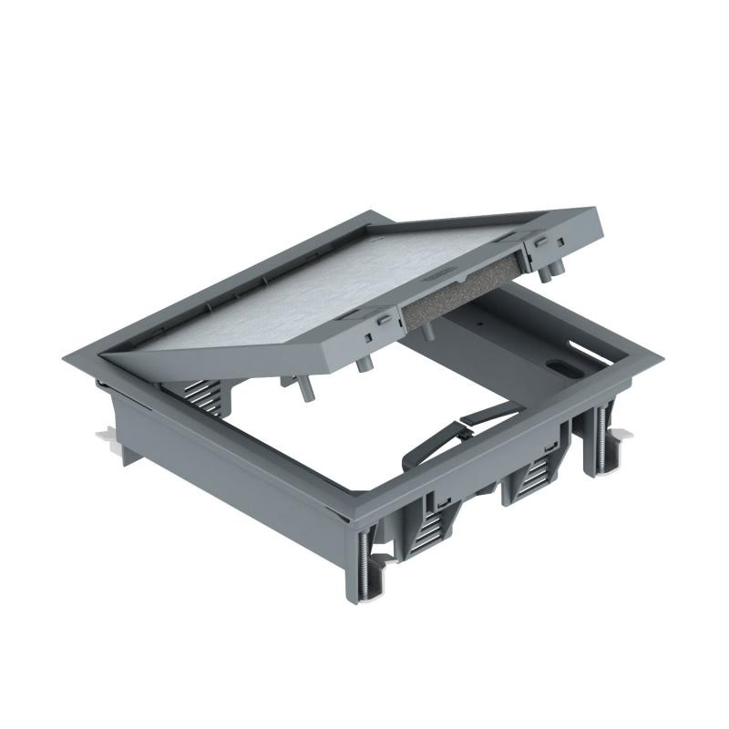 Emballage: 1 - 2 Marque: OBORéférence: 7405145EAN: 4012195890645Description: Boitier de sol GES4 RAL 7011 gris fer 7011 PA