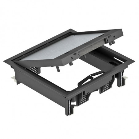 Emballage: 1 - 2 Marque: OBORéférence: 7405146EAN: 4012195890676Description: Boitier de sol GES4 RAL 9011 noir graphite 9011 PA