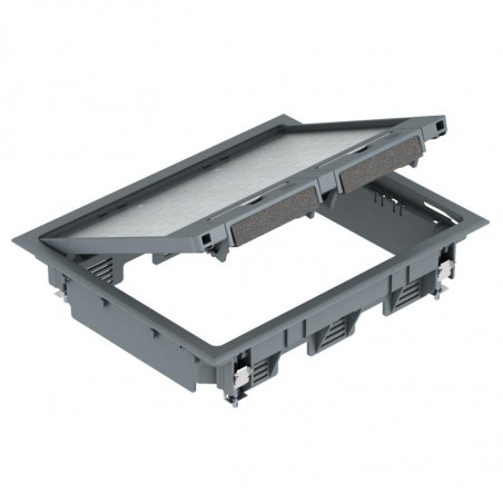 Emballage: 1 - 3 Marque: OBORéférence: 7405308EAN: 4012195103080Description: BOÎTIER DE SOL 9 MODULES POUR MONTAGE AVEC CONDUITS GRIS 7011 PA