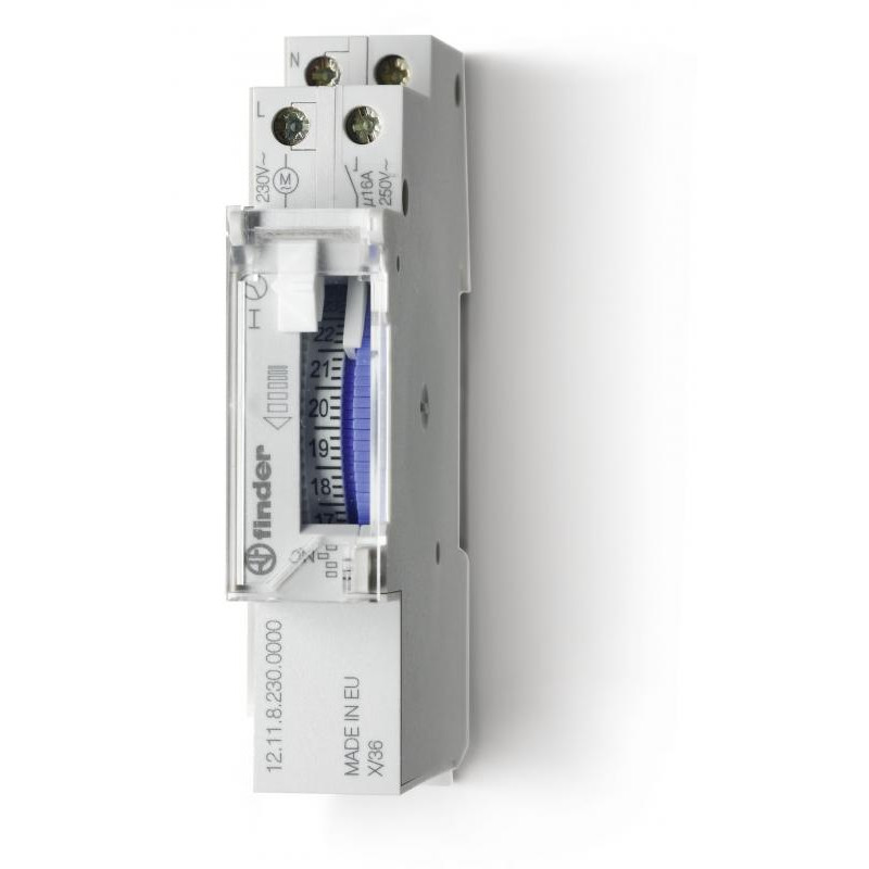 Description: Interrupteur horaire journalier, mécanique, 1NO 16A 230V, avec réserve de marche, largeur 17,5mm