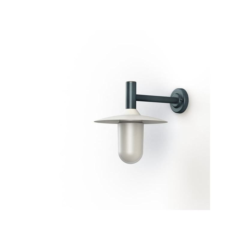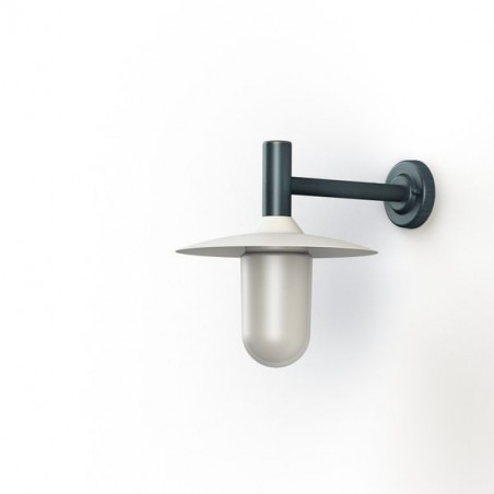 Applique descendante MONTANA en aluminium, E27, IP44, classe 1, diffuseur verre dépoli. Potence Finition Patine vert de gris 008, dôme blanc. Garantie 25 ans an