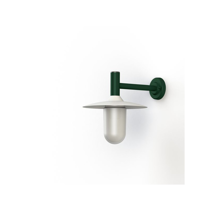 Applique descendante MONTANA en aluminium, E27, IP44, classe 1, diffuseur verre dépoli. Potence Teinte RAL 6009 Vert anglais 019, dôme blanc. Garantie 25 ans an