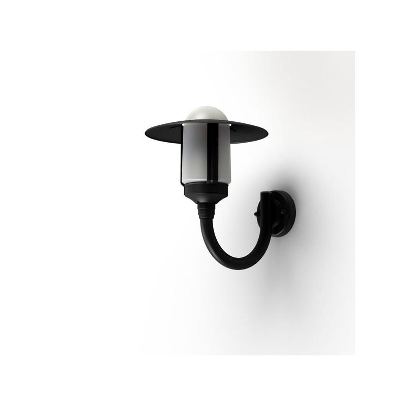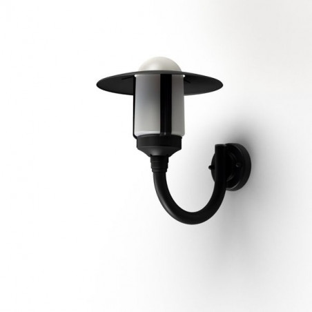 Applique montante NEWPARK en aluminium, E27, IP44, classe 1, diffuseur verre dépoli. Teinte RAL 9005 Noir foncé 000. Garantie 25 ans anticorrosion sur l'alumini