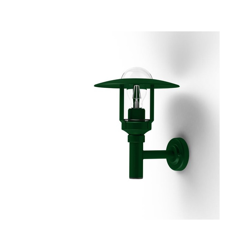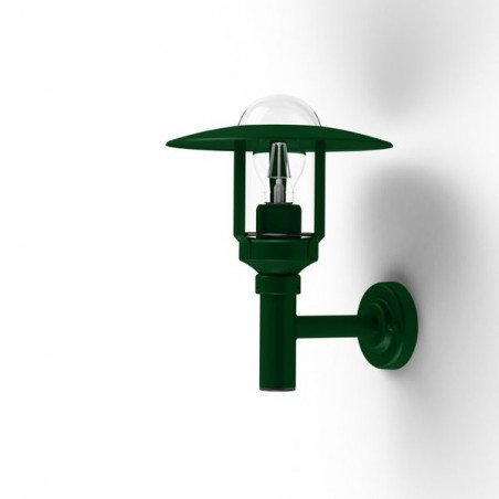 Applique montante NEWPARK en aluminium, E27, IP44, classe 1, diffuseur verre clair. Teinte RAL 6009 Vert sapin 067. Garantie 25 ans anticorrosion sur l'aluminiu