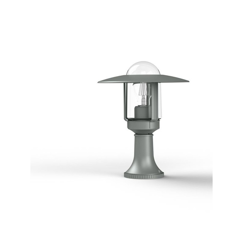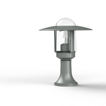 Description: Borne NEWPARK en aluminium, hauteur 316mm, E27, IP44, classe 1, diffuseur verre clair. Teinte Gris métal 023. Garantie 25 ans anticorrosion sur l'aluminium