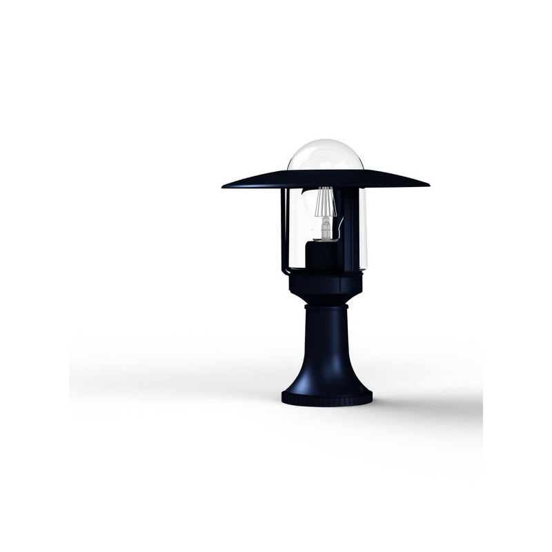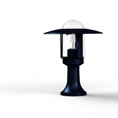 Borne NEWPARK en aluminium, hauteur 316mm, E27, IP44, classe 1, diffuseur verre clair. Teinte RAL 5011 Bleu acier 065. Garantie 25 ans anticorrosion sur l'alumi