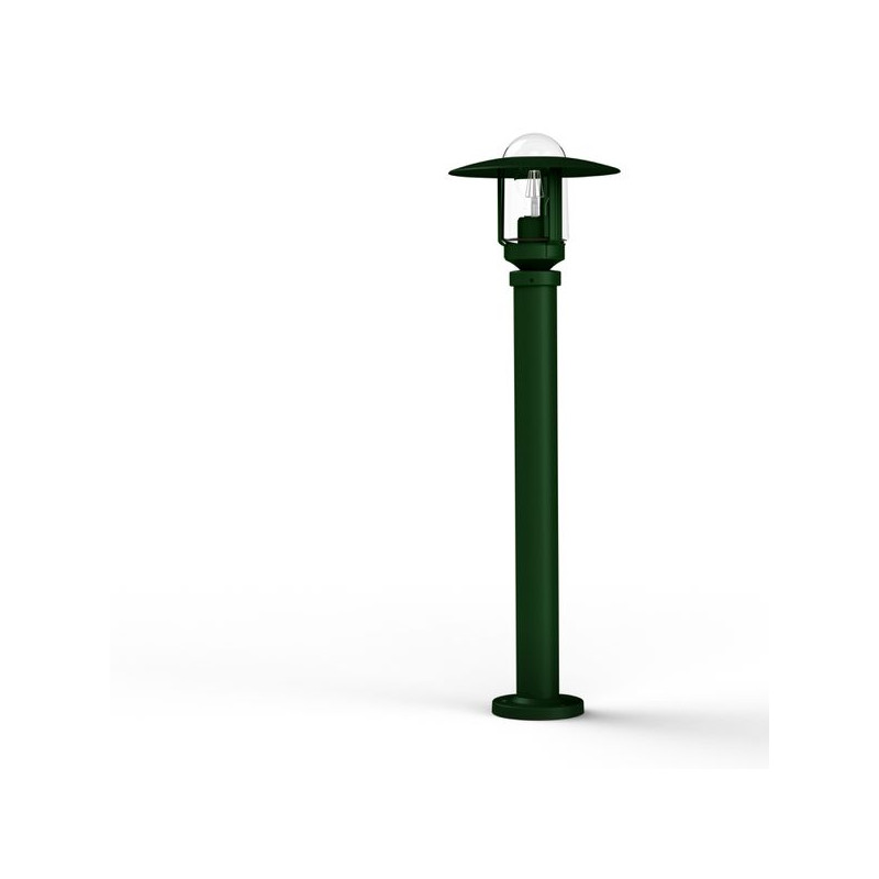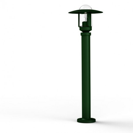 Borne NEWPARK en aluminium, hauteur 851mm, E27, IP44, classe 1, diffuseur verre clair. Teinte RAL 6009 Vert anglais 019. Garantie 25 ans anticorrosion sur l'alu