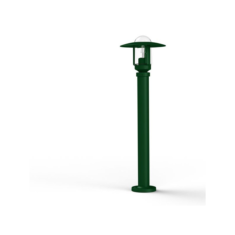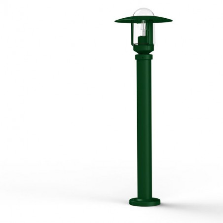 Description: Borne NEWPARK en aluminium, hauteur 851mm, E27, IP44, classe 1, diffuseur verre clair. Teinte RAL 6009 Vert sapin 067. Garantie 25 ans anticorrosion sur l'alumi