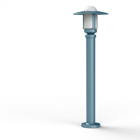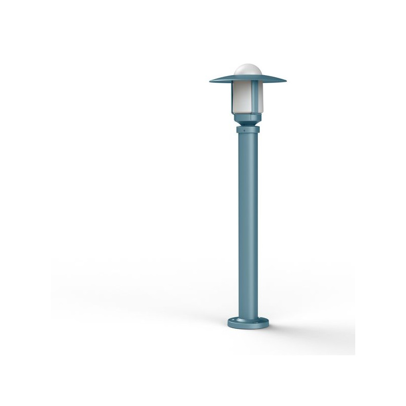 Borne NEWPARK en aluminium, hauteur 851mm, E27, IP44, classe 1, diffuseur verre dépoli. Teinte Bleu 111. Garantie 25 ans anticorrosion sur l'aluminium